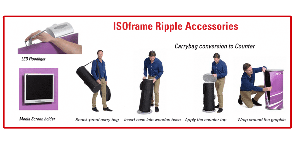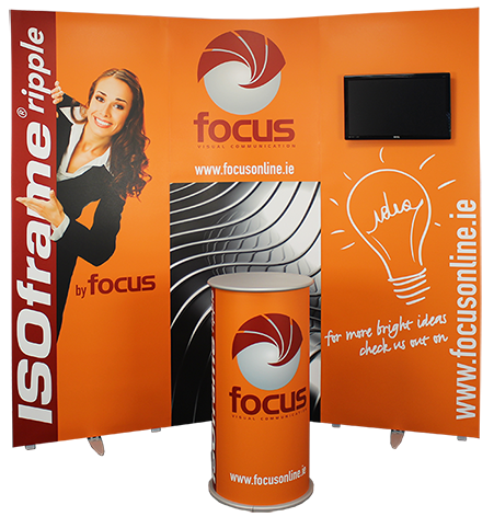 The ISOframe Ripple 3 is a lightweight 2.1m h x 2.4m w portable display with a good degree of flexibility. Now also available in 2.27m high.