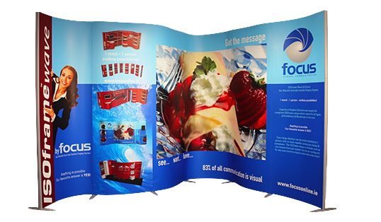 ISOframe Wave is the world’s first fully flexible display system. Simple tool-less assembly means set-up is both fast & easy. Therefore 1 person can install a 6 panel 4.8m display in just 5 minutes and the possibilities are truly endless!
