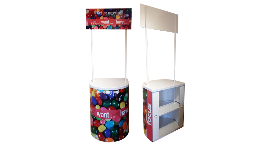 Easy to use Professional Portable Tasting Counter with supported internal shelf & Overhead Fascia